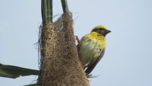 Characteristics: The breeding adult male bird has an attractive yellow crown and upper back. The juvenile male and female birds look similar to the female house sparrow. Now it has to roll in fast before the South-West monsoon which blows wind and rain drops which make the nest not easy to dangle and may fall from the supporting point.